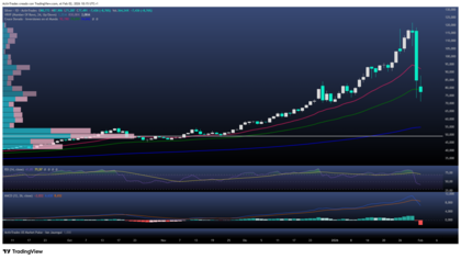 Pese a la caída del viernes, la plata conserva su atractivo a medio y largo plazo como activo refugio y con fuerte demanda industrial (energía solar, electrónica y transición energética). Actualmente, la cotización ha retrocedido a niveles cercanos a los de Navidad 2025, con un RSI en 42,28%, lo que sugiere posible agotamiento de la venta, mientras que el MACD indica un giro bajista fuerte. El POC (punto de control) se sitúa en los mínimos de 45,53 USD, por encima de la media móvil de 200 días. Hoy, la plata parece apoyarse en la media de 100 días, intentando recuperar posiciones. Si la caída se frena y el precio supera 95,86 USD, podríamos ver un nuevo impulso alcista; de lo contrario, la corrección podría extenderse hasta el siguiente soporte, alrededor de 70 USD.