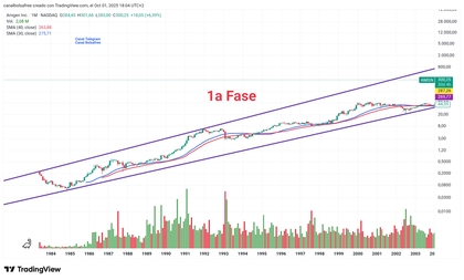 1a Fase.- Canal Alcista desde salida a bolsa hasta Enero del 2000. Valor que fue desde los 0,20 centavos hasta los 52$... una burrada de subida.
