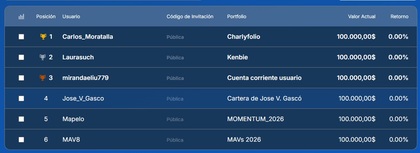 Importante: En caso de que haya un empate en la rentabilidad, el ganador será aquel que haya gestionado su cartera con menor volatilidad. Aquí se premia al que sabe invertir sin andar dando tumbos.