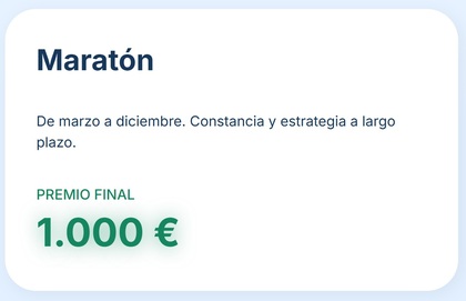 Esta es la segunda forma de ganar. Cada mes premiamos a la cartera que mejor rendimiento dio en ese periodo. Son 9 sprints mensuales de marzo a diciembre.