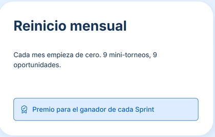 El premio para cada ganador de estos sprints mensuales es de 100€. Premio al ganador de cada uno de los 9 sprints mensuales