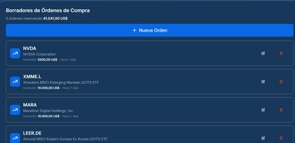 Ventana de ejecución: Las órdenes se lanzan el último fin de semana del mes (cuando el mercado está cerrado) y se ejecutan automáticamente al precio de apertura del lunes.
