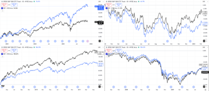 En la práctica, este mecanismo actúa como una forma implícita de apuesta por la reversión a la media y también un poco por el factor “value”: porque se reduce la exposición a las compañías que han subido más y se aumenta la apuesta en aquellas que han quedado rezagadas. Sin embargo, también conlleva mayores costes de transacción internos, especialmente si se aplica en mercados poco líquidos o con empresas pequeñas. Por eso, los ETFs de igual ponderación funcionan mejor en mercados amplios y líquidos, como el estadounidense, y en específico de las 500 empresas más grandes.
