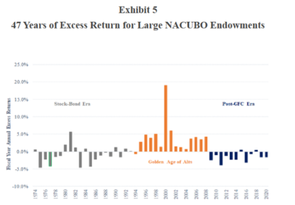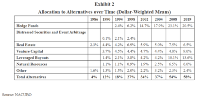 El auge de los activos alternativos se ha convertido en uno de los mayores cambios estructurales en la gestión de inversiones de los últimos treinta años. Fondos universitarios (endowments), aseguradoras, fondos soberanos y grandes instituciones financieras han transformado la composición de sus portafolios, sustituyendo gradualmente una parte significativa de las acciones y los bonos por inversiones en capital privado, crédito privado, inmuebles no cotizados infraestructuras. La principal causa de este cambio masivo de flujos fue gracias a la influencia de David Swensen quien gestionó con mucho éxito y muy buenos retornos el Endowment de la Universidad de Yale. Parte de ese éxito, que muchos quisieron copiar, se debió a la inclusión de activos alternativos y otros no cotizados.