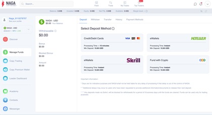 4. Depósito de fondos: NAGA permite realizar depósitos mediante: