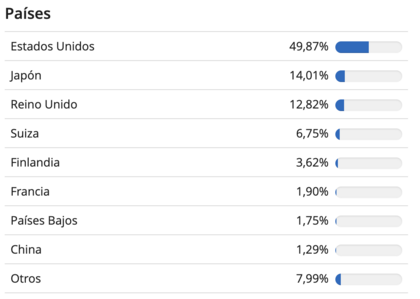 Composición geográfica del Amundi MSCI Water ESG Screened UCITS ETF