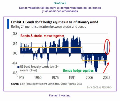 Otro caso práctico sería lo que aconteció en los mercados accionario y de bonos americanos en 2022.