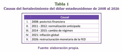 Revisemos qué factores o hechos han incidido en el repunte del dólar estadounidense en esos periodos de los últimos 18 años (Tabla 1):